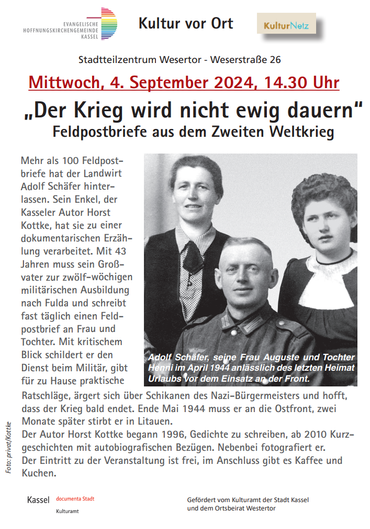 Kultur vor Ort: "Der Krieg wird nicht ewig dauern" - Feldpostbriefe aus dem Zweiten Weltkrieg (mit Horst Kottke)