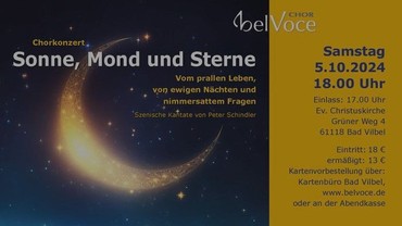 "Sonne, Mond und Strerne": Eintritt 18 Euro / ermäßigt 13 Euro. VVK Kartenbüro Bad Vilbel oder an der Abendkasse.