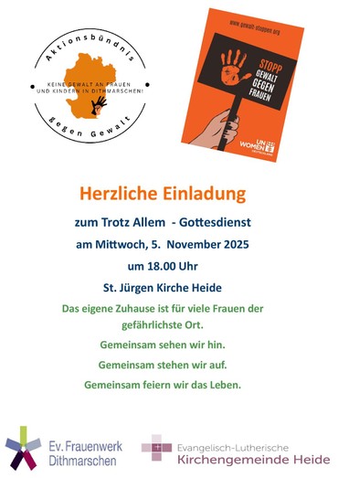 Herzliche Einladung am Mittwoch, 5. November, 18 Uhr in der St.-Jürgen-Kirche. Das eigene Zuhause ist für viele Frauen der gefährlichste Ort.