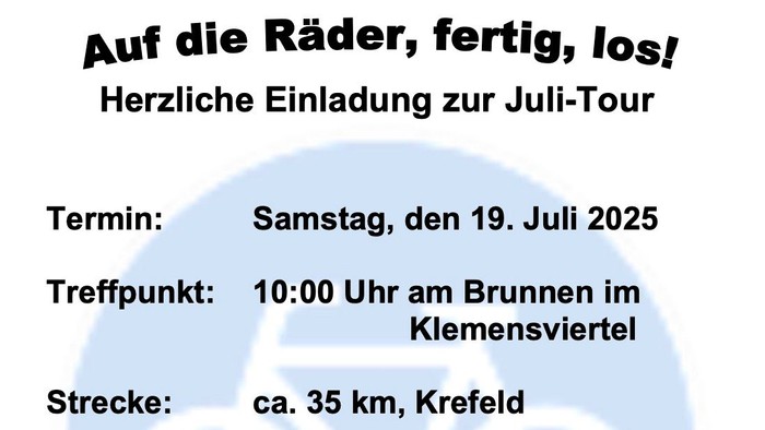 Die Tour im Juni mußte ja leider ausfallen. Diese Tour holen wir jetzt nach. Es ist wieder eine abwechslungsreiche Tour, die uns nach Krefeld führen wird.