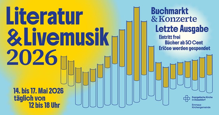 Vom 14. bis 17. Mai 2025 bietet die Veranstaltung „Literatur & Livemusik“ über 13.000 vorgeliebte Bücher, Schallplatten, DVDs, CDs und Artverwandtes für kleines Geld und zugunsten guter Zwecke in der Düsseldorfer Matthäikirche an. Begleitend finden acht Konzerte mit klassischer Musik statt.